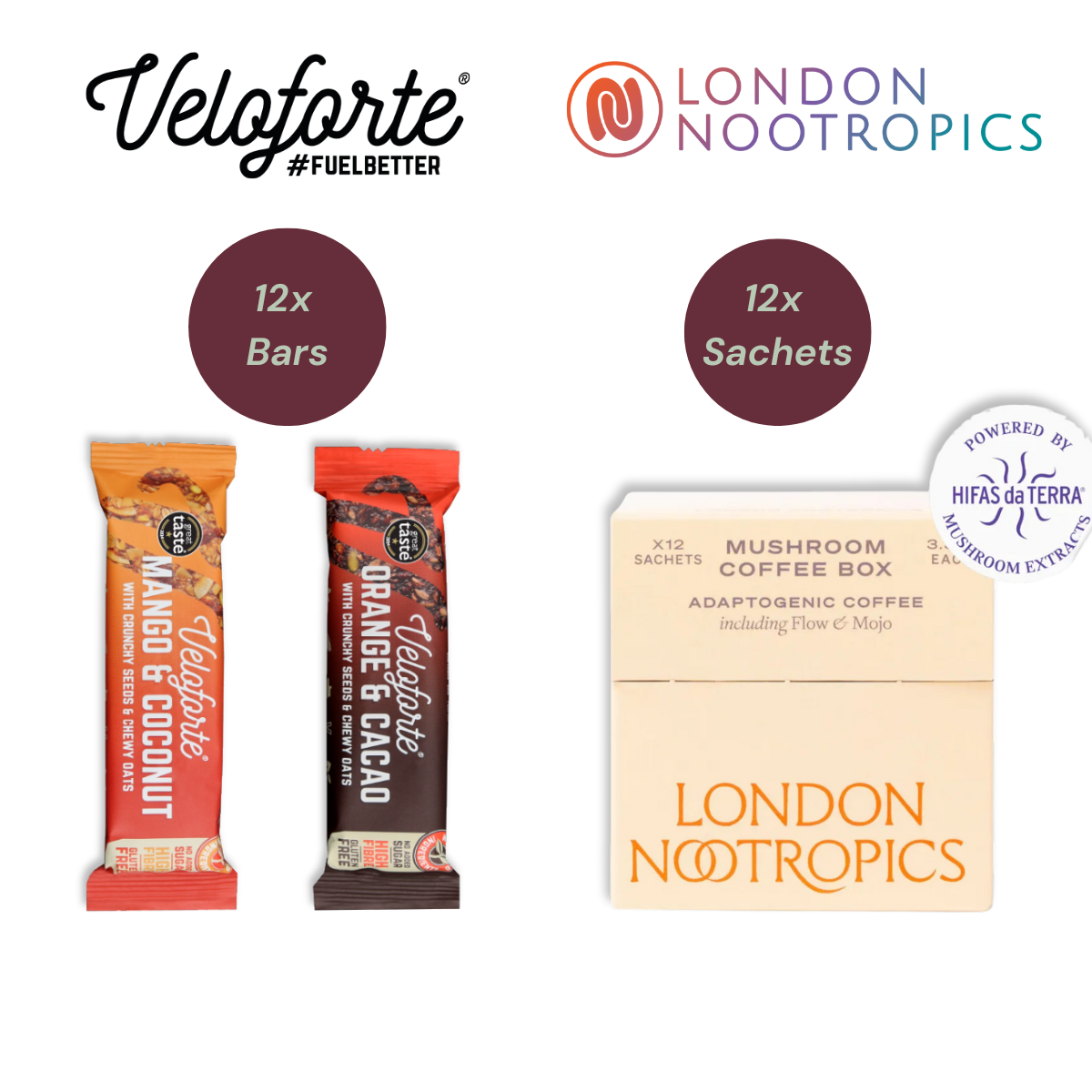 Use the bars for physical fuel, the adaptogenic coffee for mental focus. A perfect way to perk up your day.